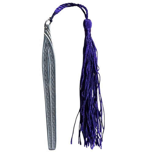 Gorgeous bookmark with purple tassel made from upcycled vintage cutlery