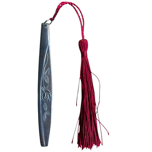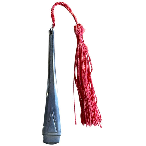 Gorgeous bookmark with red tassel made from upcycled vintage cutlery