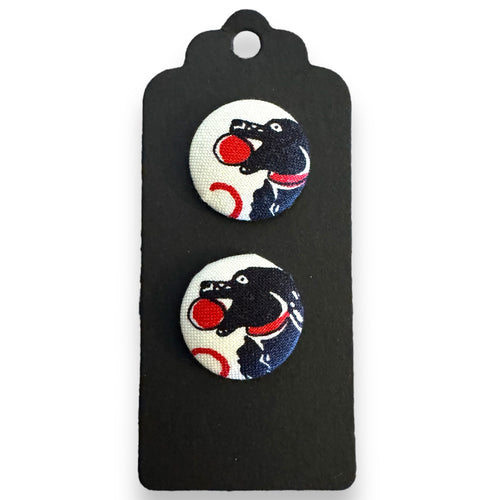 Upcycled fabric covered stud earrings with stainless steel posts - dog with ball