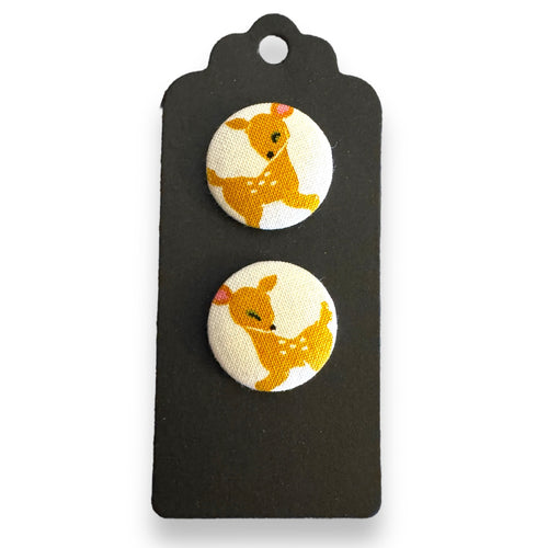 Upcycled fabric covered stud earrings with stainless steel posts - baby deer