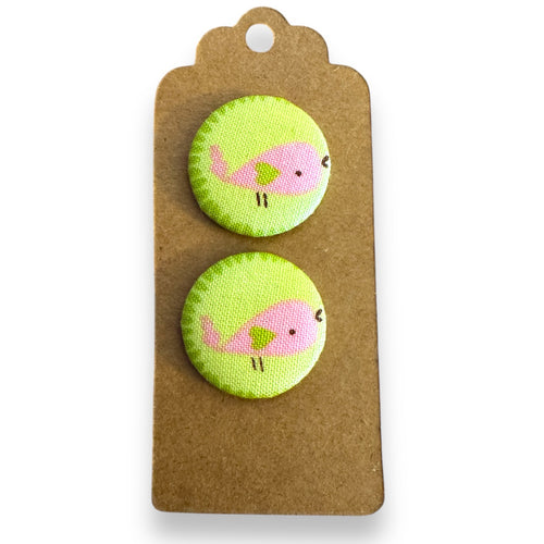 Upcycled fabric covered stud earrings with stainless steel posts - pink birdies