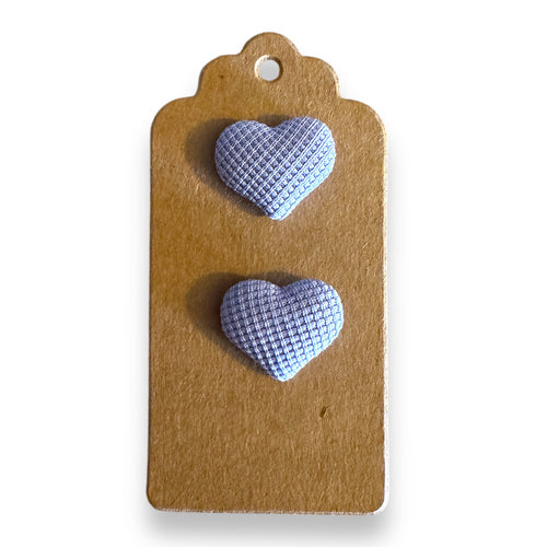 Upcycled fabric covered stud earrings with stainless steel posts - lilac hearts