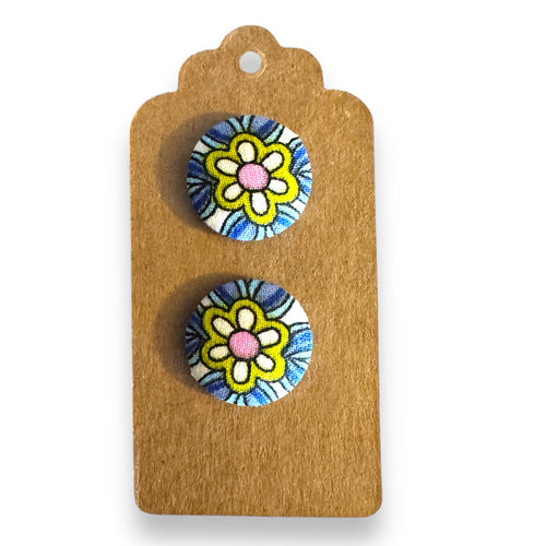 Upcycled fabric covered stud earrings with stainless steel posts - bright and cheerful