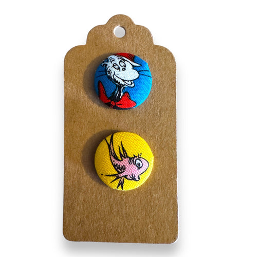 Upcycled fabric covered stud earrings with stainless steel posts - Seuss fun