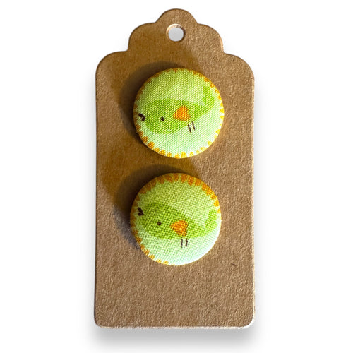 Upcycled fabric covered stud earrings with stainless steel posts - green country birds