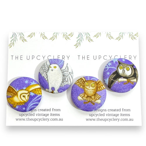 Upcycled fabric covered fridge magnet set of 4 - MAGIC OWLS