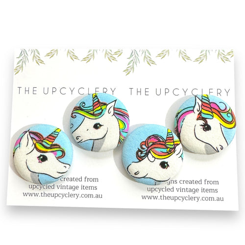 Upcycled fabric covered fridge magnet set of 4 - RAINBOW UNICORNS