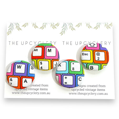 Upcycled fabric covered fridge magnet set of 4 - RAINBOW KEYBOARD