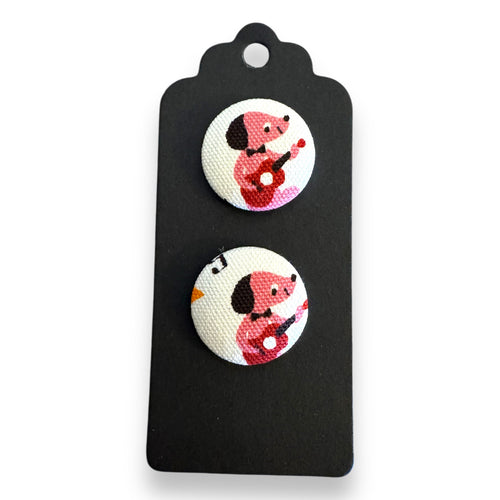 Upcycled fabric covered stud earrings with stainless steel posts - guitar dogs![]()  - Regular price