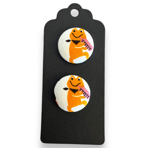 Upcycled fabric covered stud earrings with stainless steel posts - keytar frog![]()  - Regular price