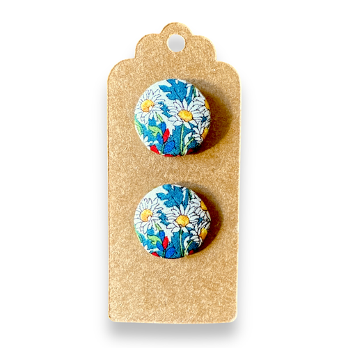 Upcycled fabric covered stud earrings with stainless steel posts - vintage daisies
