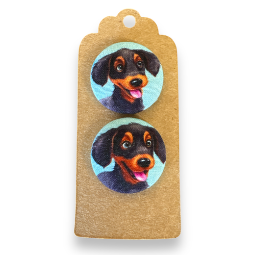 Upcycled fabric covered stud earrings with stainless steel posts - dachshunds