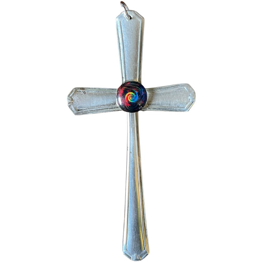This beautiful cross has been upcycled from vintage silver plated cutlery. Carefully and lovingly hand-made, all our items are unique and no two ever turn out exactly the same. This ensures you have a bespoke and original piece to give as a gift or to cherish for yourself.