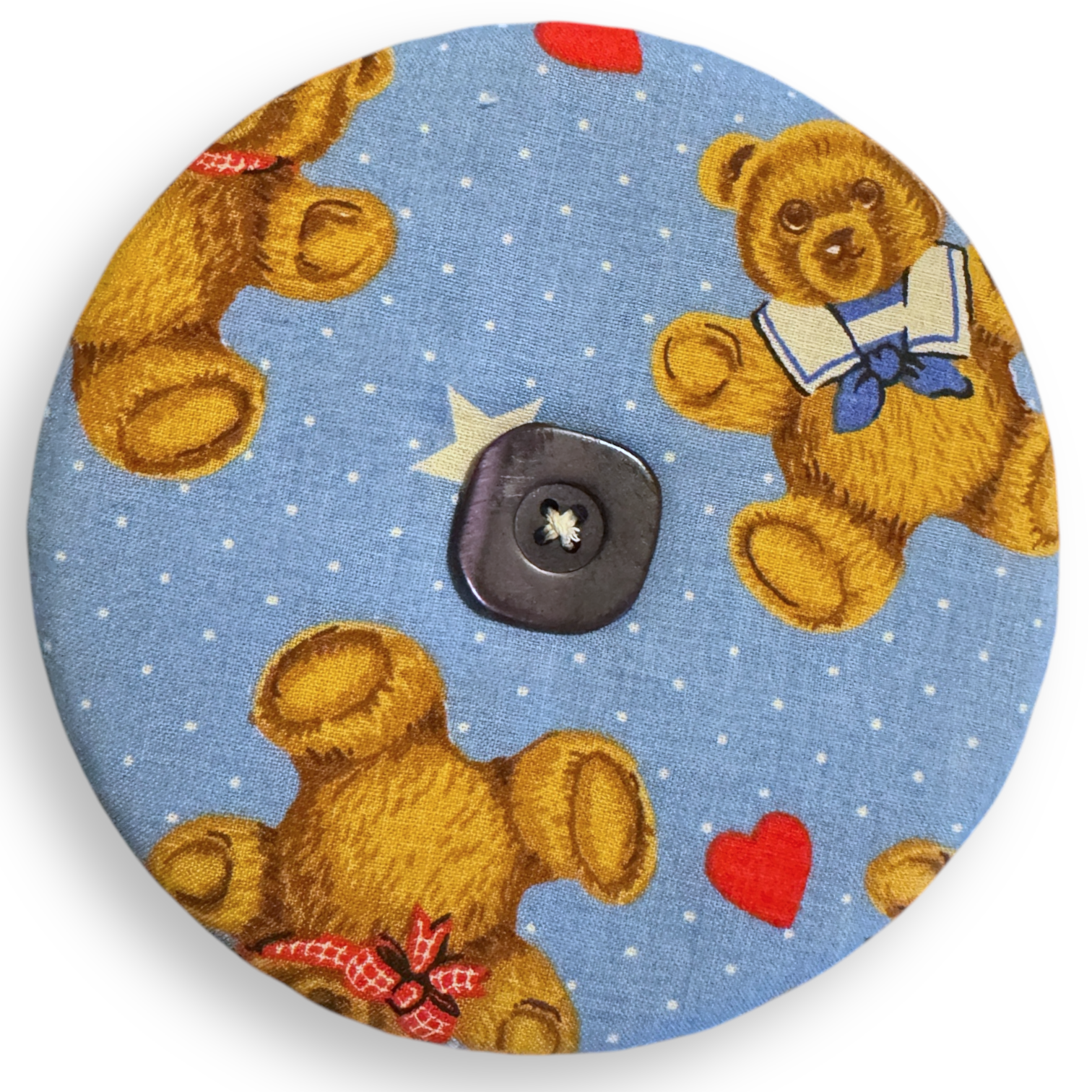 Upcycled double sided round padded playing card holder for kids or adults BLUE TEDDIES