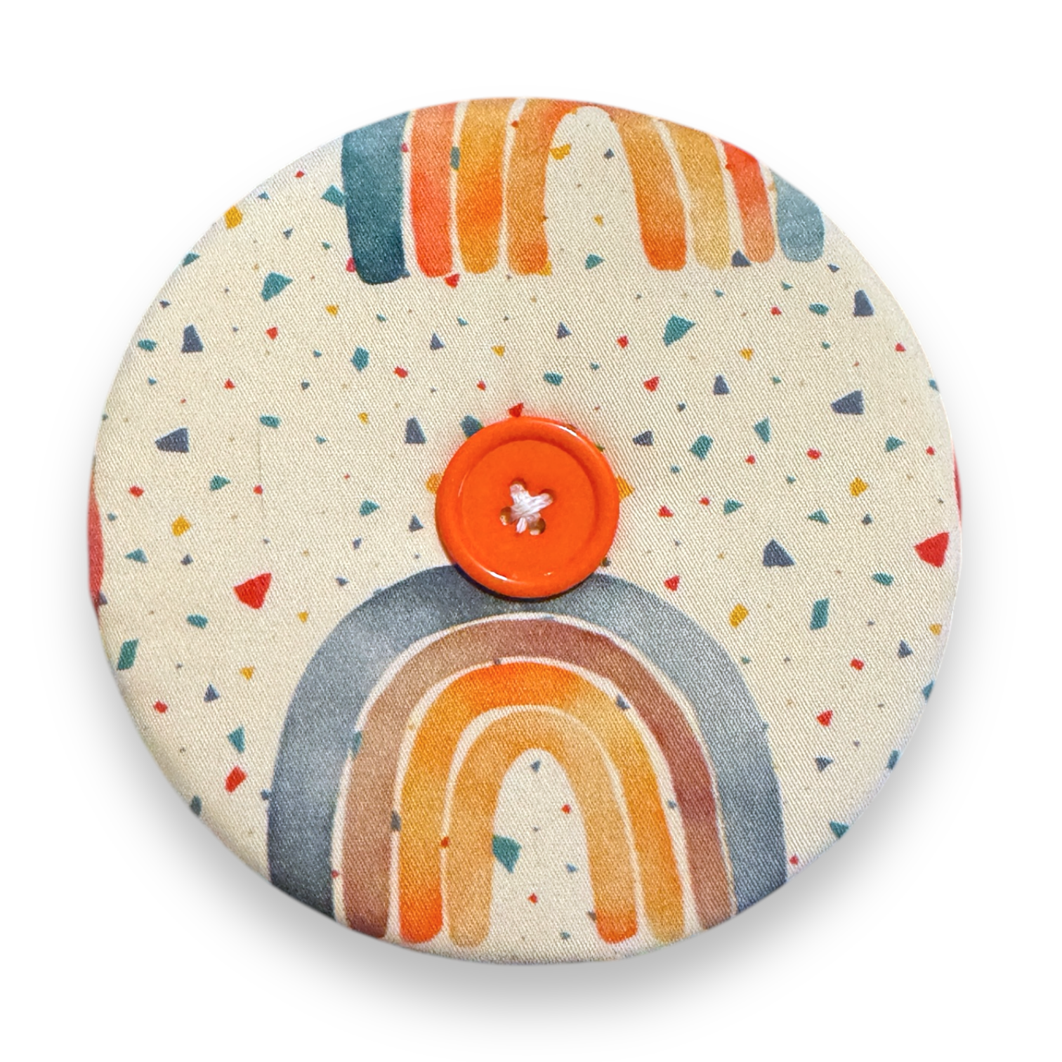 The cardholder has been carefully hand-crafted from old DVDs and pre-loved fabrics. It's padded to make it extra comfy to hold. They make lovely gifts for children and adults alike. Each side is different and the pictures show both sides of the one you will receive but you can reverse them to display whichever side you prefer. The third pictue is generic to show how it works. They measure approx 12cm across