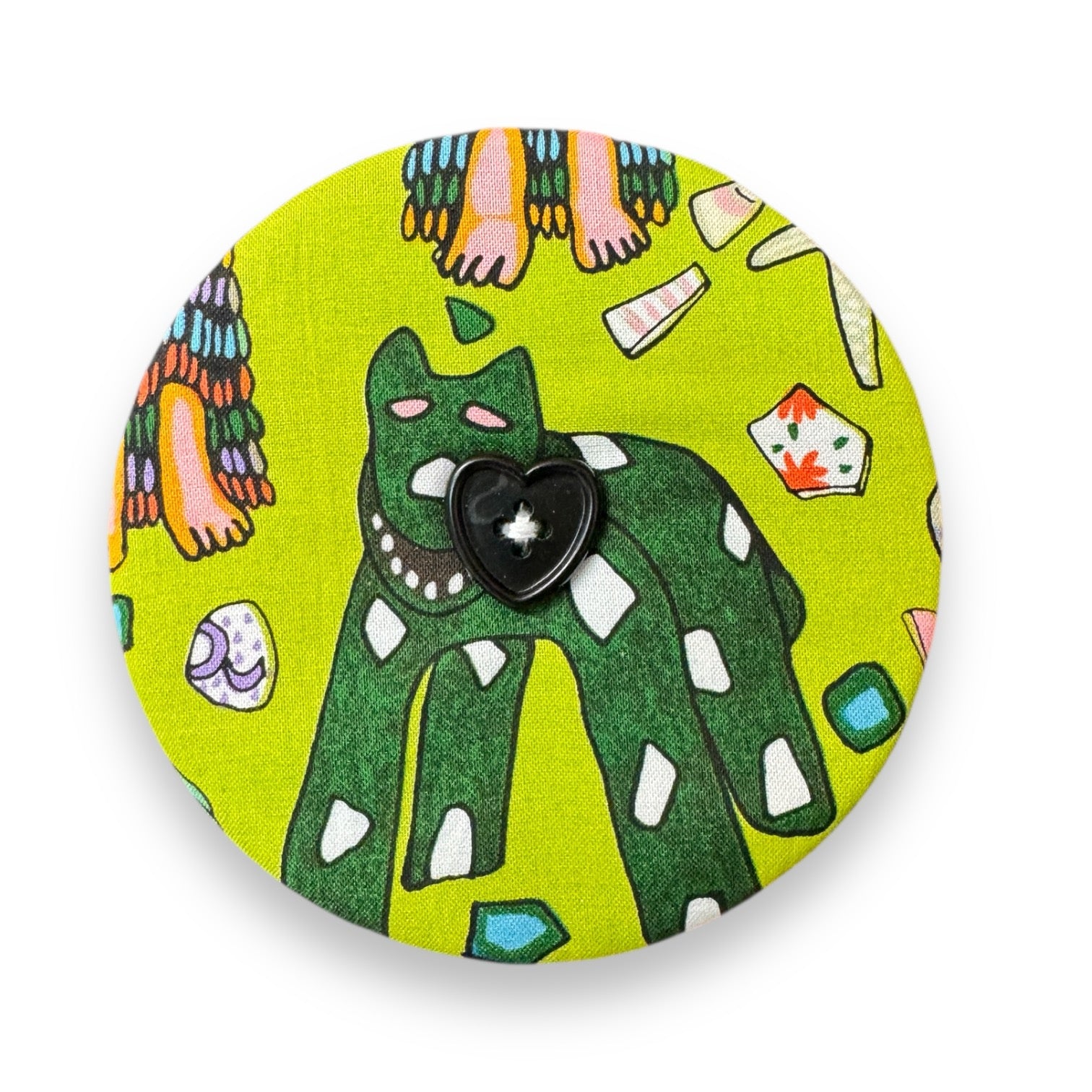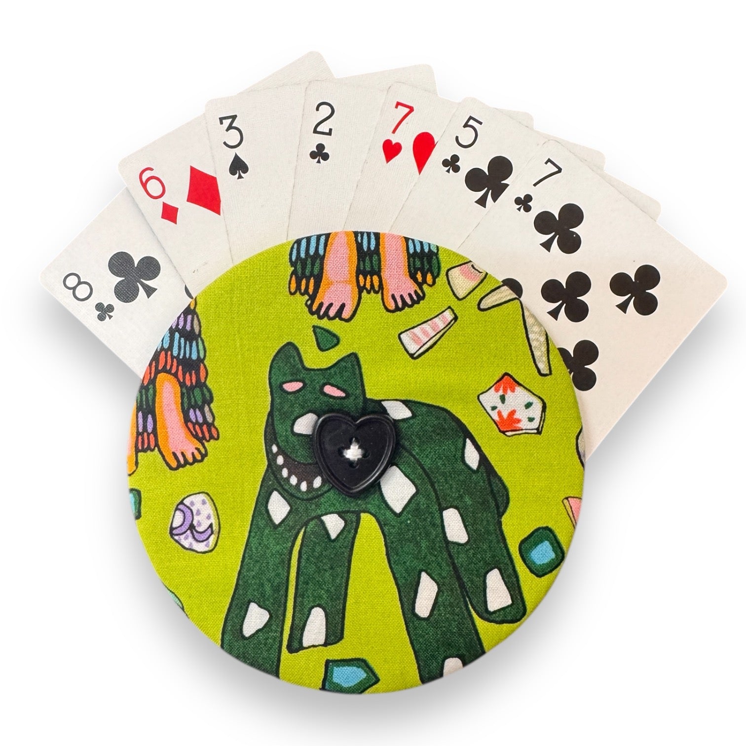 Upcycled double sided round padded playing card holder for kids or adults NATIVE DOG