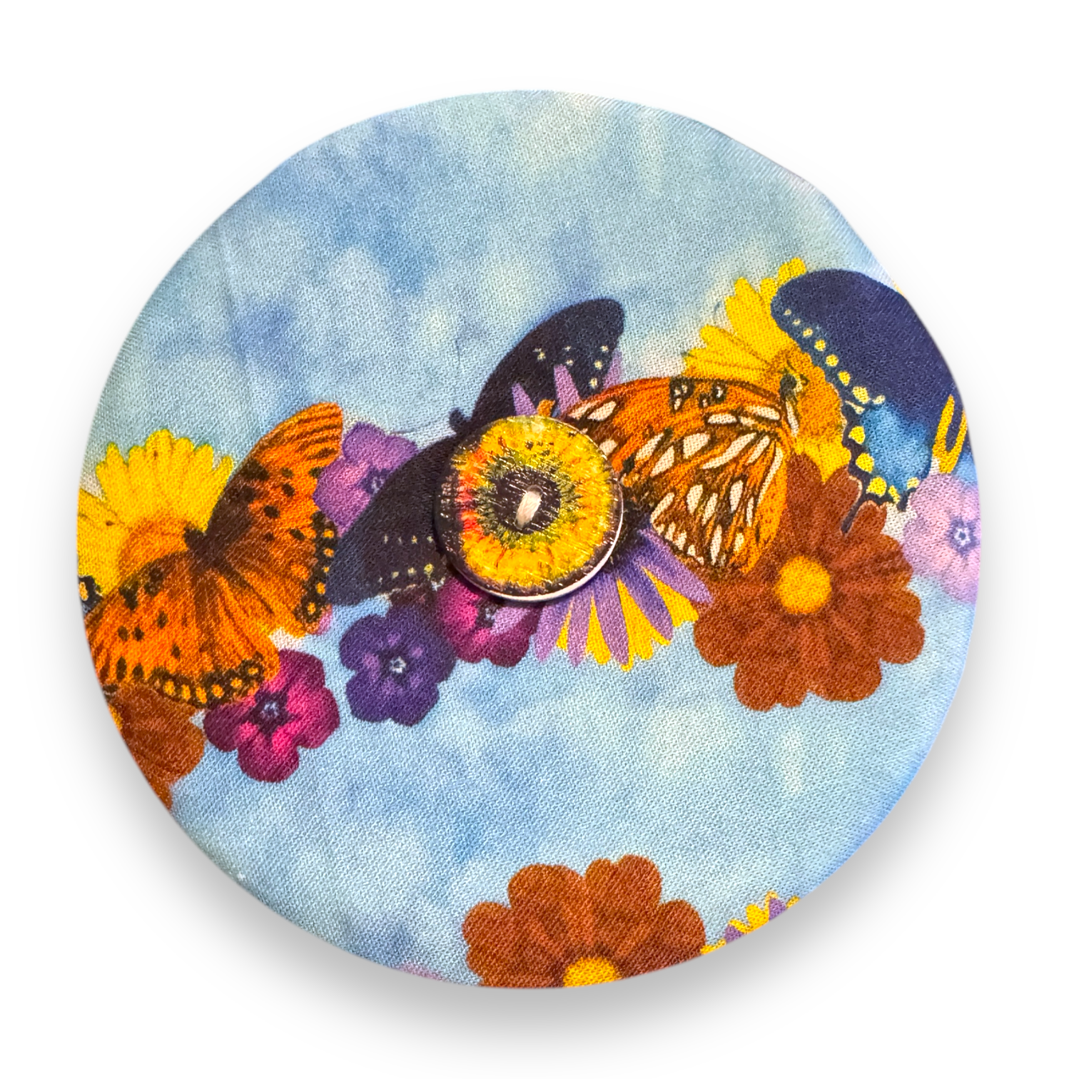 Upcycled double sided round padded playing card holder for kids or adults FLORAL BUTTERFLIES