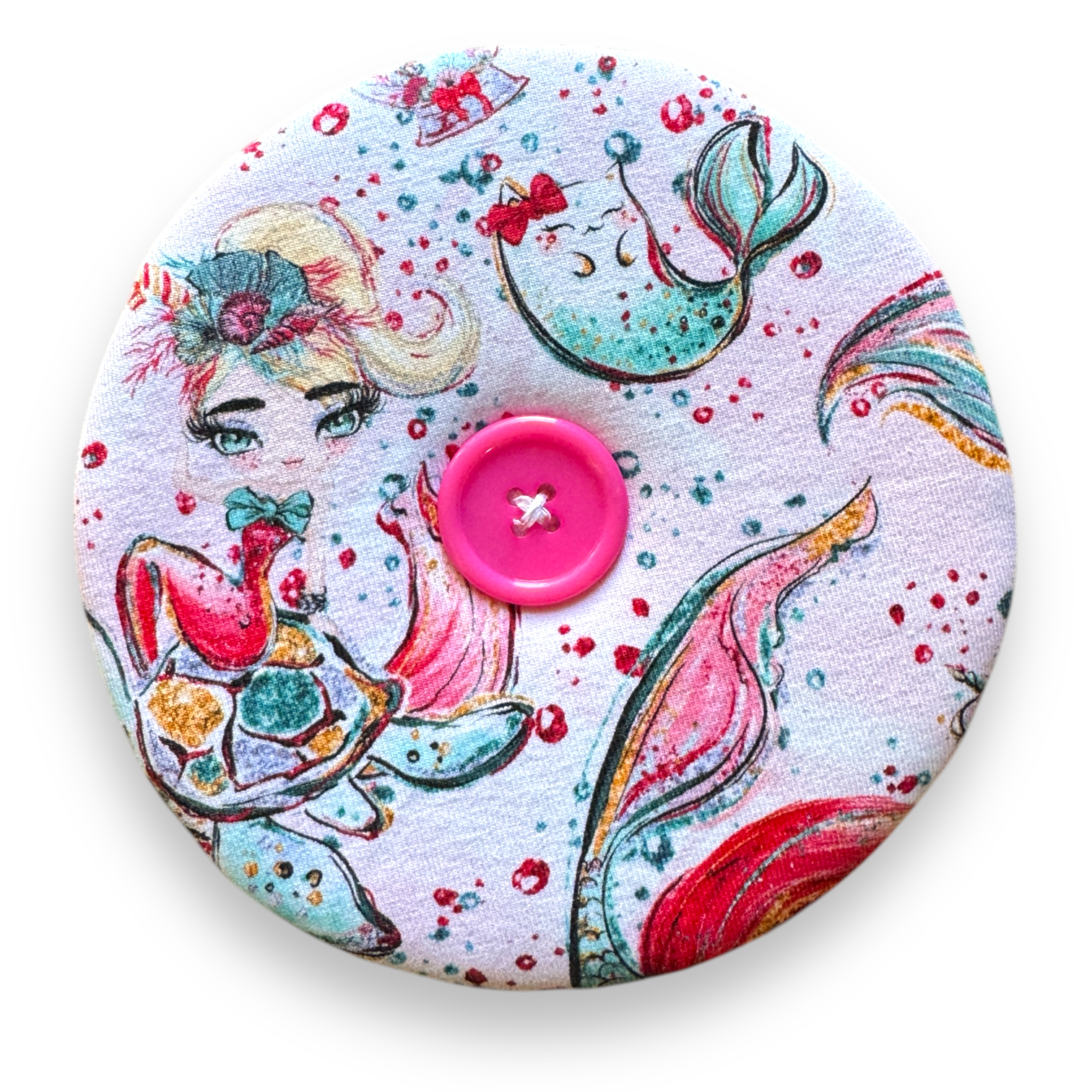 Upcycled double sided round padded playing card holder for kids or adults UNICORNS & MERMAIDS