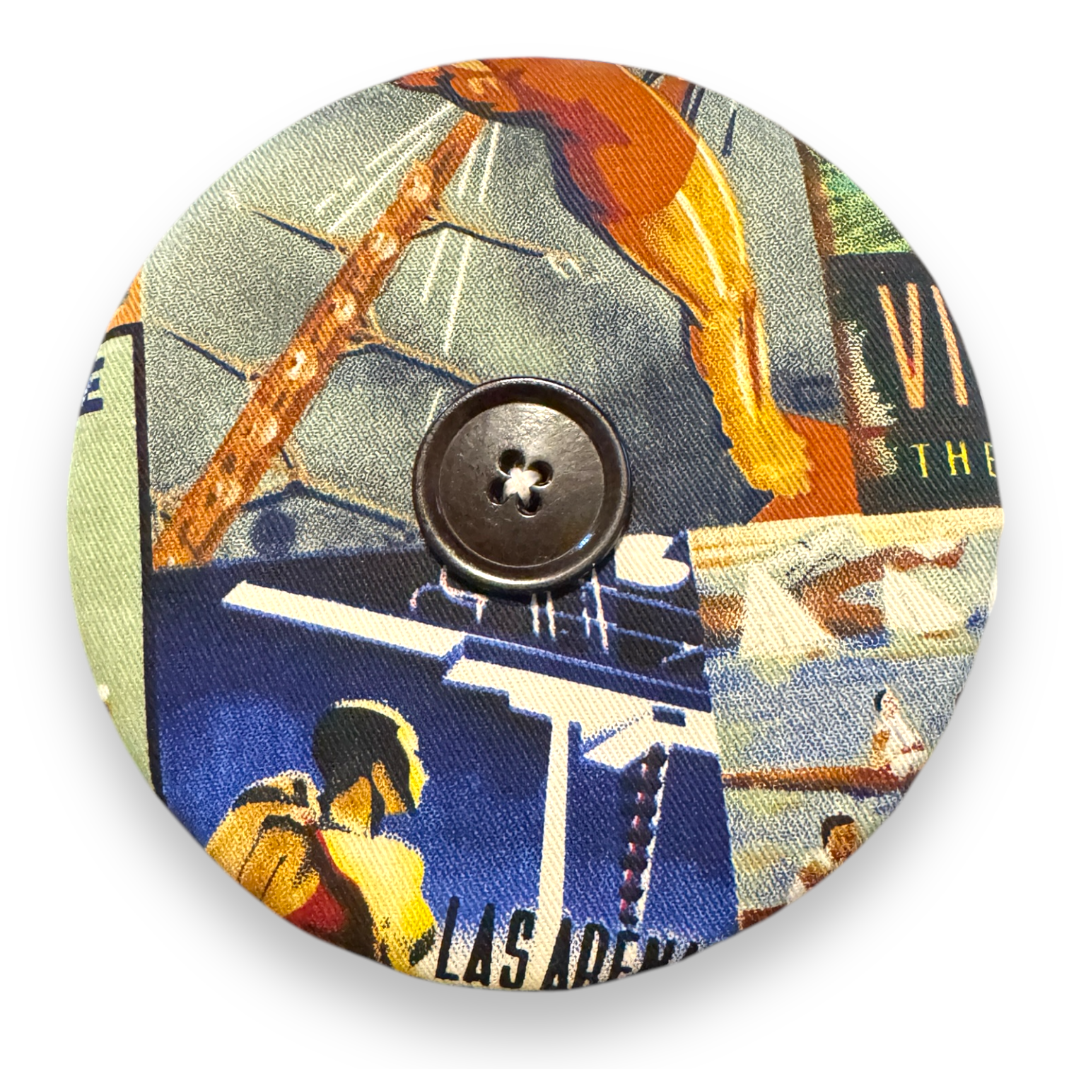 Upcycled double sided round padded playing card holder for kids or adults VINTAGE