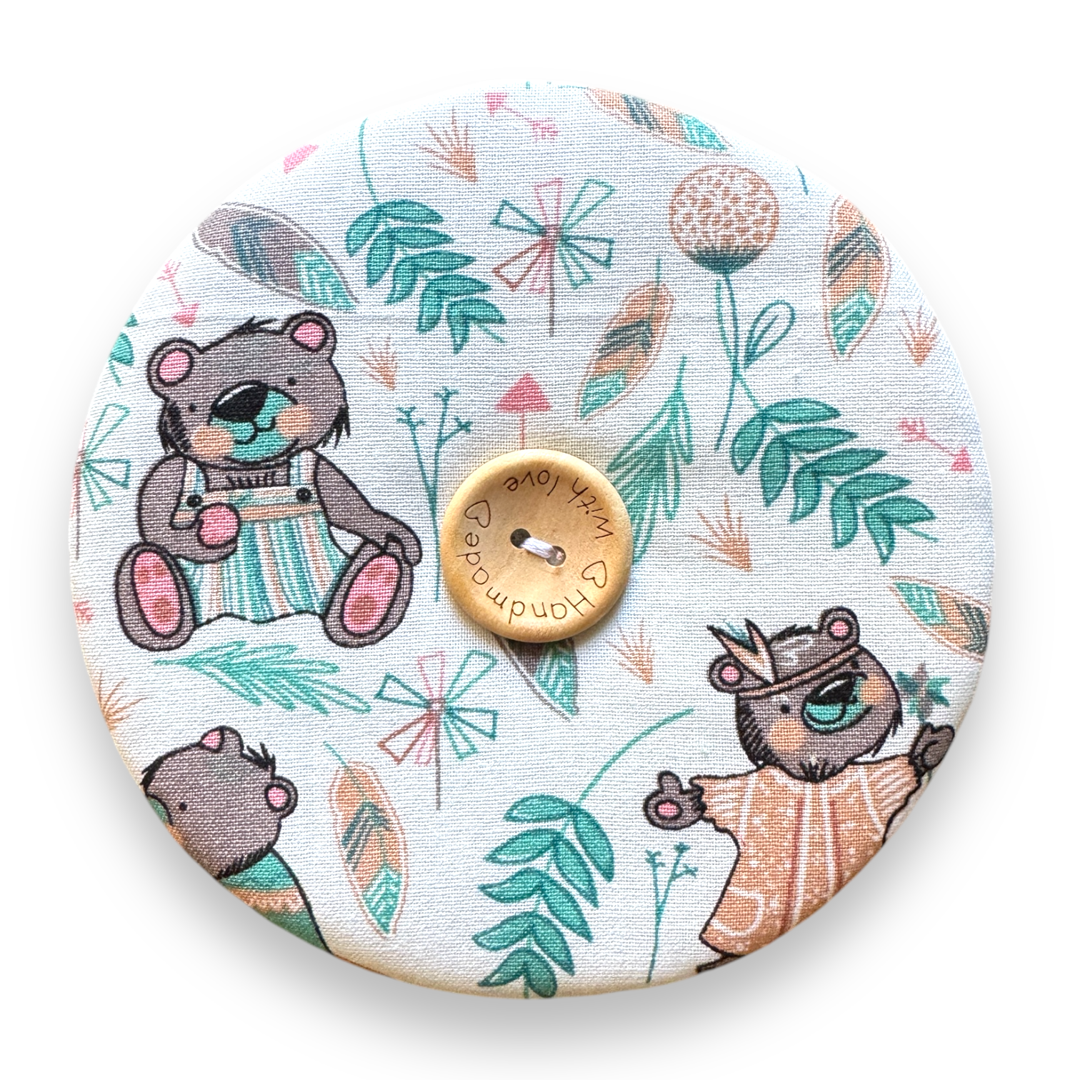 Upcycled double sided round padded playing card holder for kids or adults WOODLAND BEARS